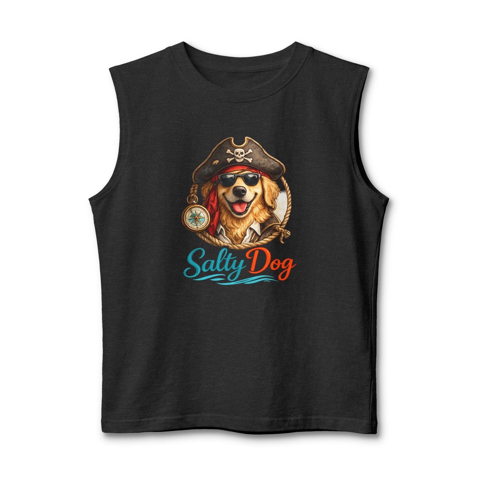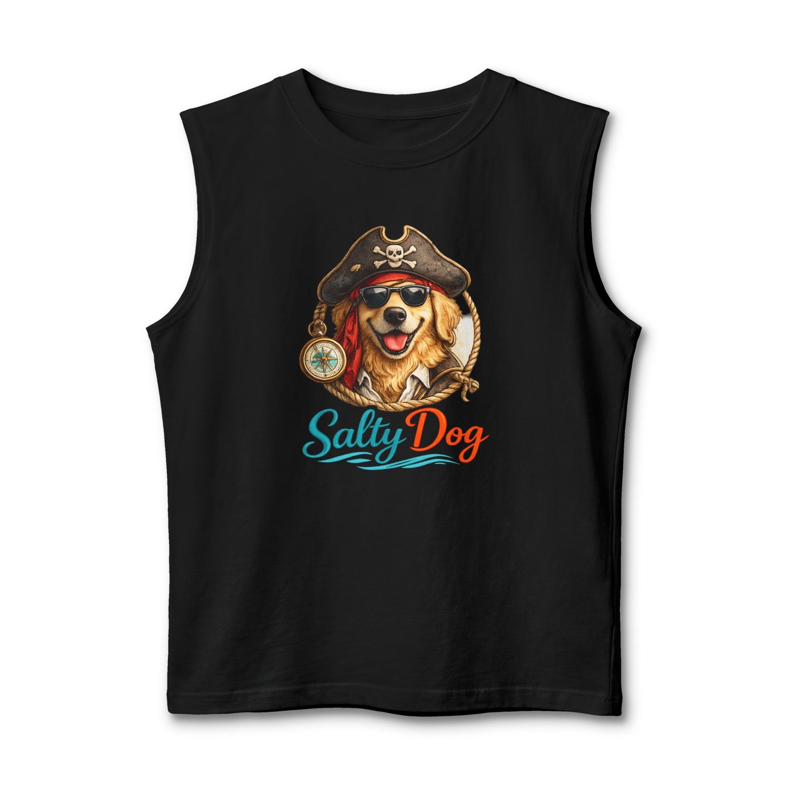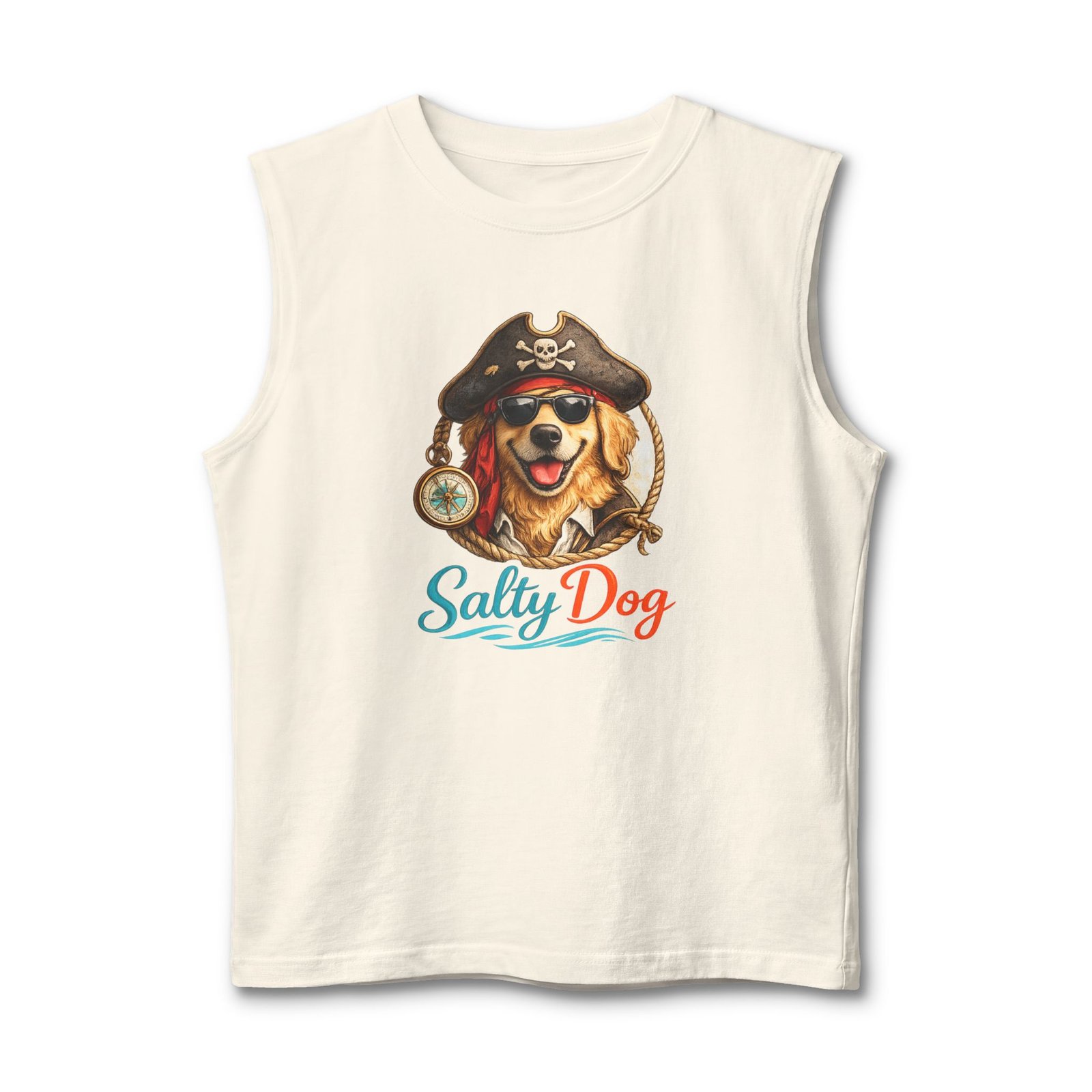 Salt air, sun on your face, and a wagging companion at your side — this muscle tank channels easy, beachside energy with a playful pirate-dog illustration and bright, ocean-tinted lettering. Lightweight and structured, it sits cleanly at the shoulders and drapes comfortably over the chest, so you can move from morning surf walks to bonfire nights without fuss. The design feels like a salty laugh shared with friends on a summer pier; it’s for people who love dogs, coastal weekends, and clothing that looks lived-in but still sharp. Throw it on with board shorts or layered under an open shirt when the breeze picks up — it blends casual utility with a warm, nostalgic vibe suited to seaside gatherings and laid-back summer rituals.